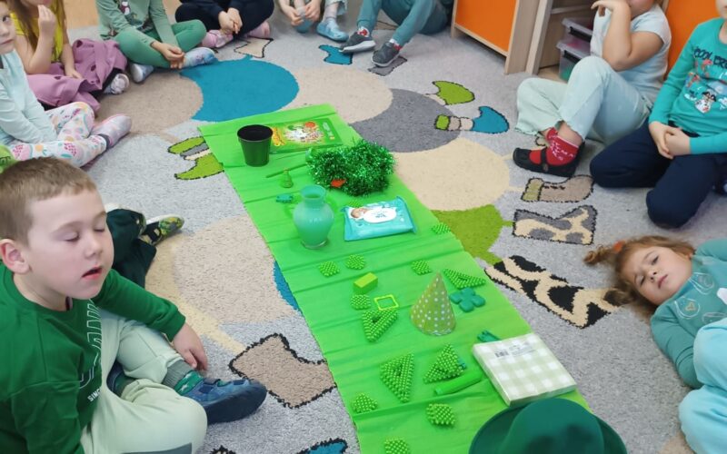 Strażnicy Kolorów – misja: ZIELONY! Dziś dzieci z grupy Kotki przywracały światu kolor zielony! Najpierw odnalazły w sali wszystkie zielone przedmioty , a potem wysłuchały opowiadania o listku Zielusiu, dzięki...