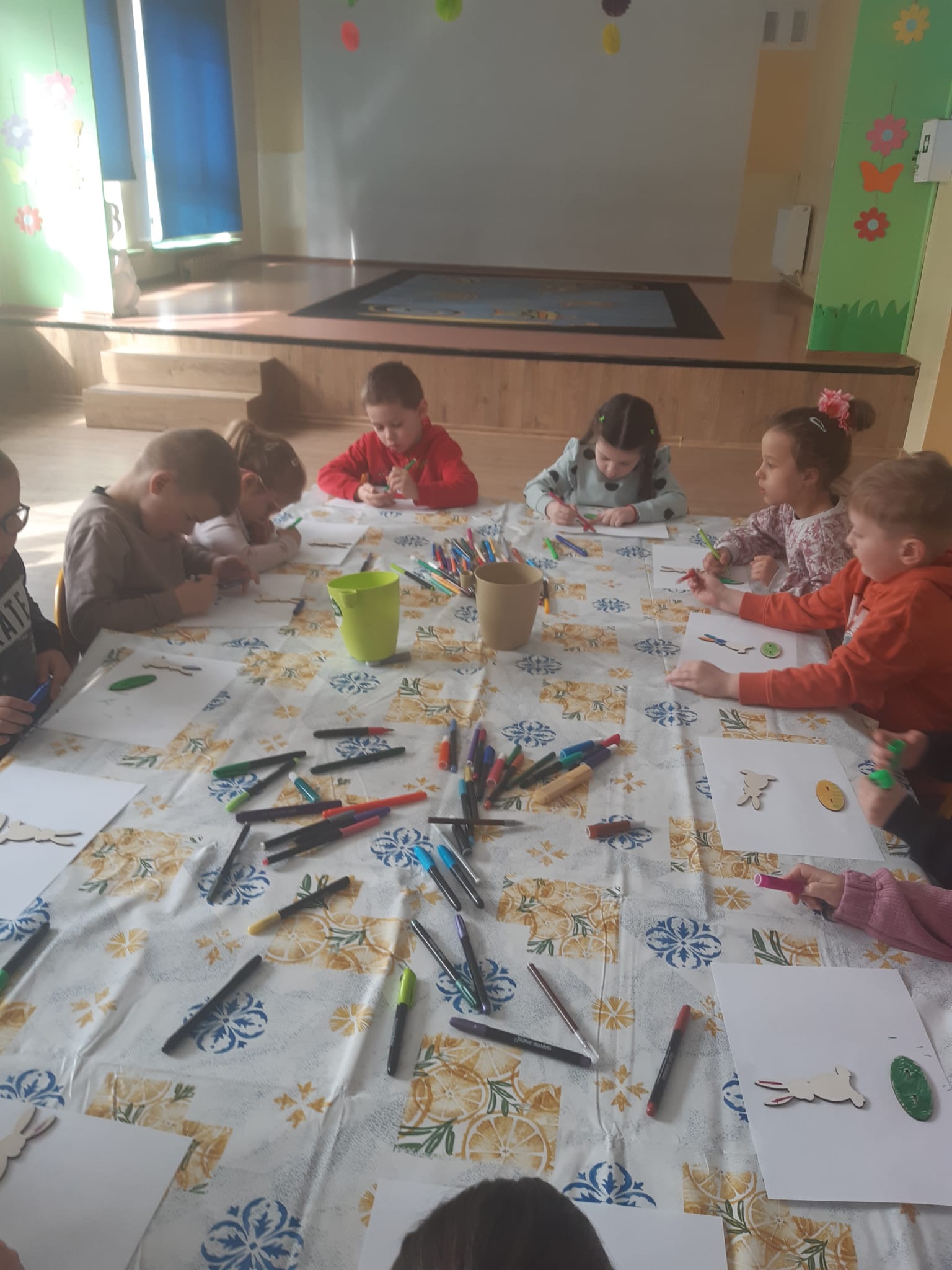Przedszkolaki wzięły udział w warsztatach świątecznych, podczas których własnoręcznie wykonały urocze zajączkowe figurki ![]()